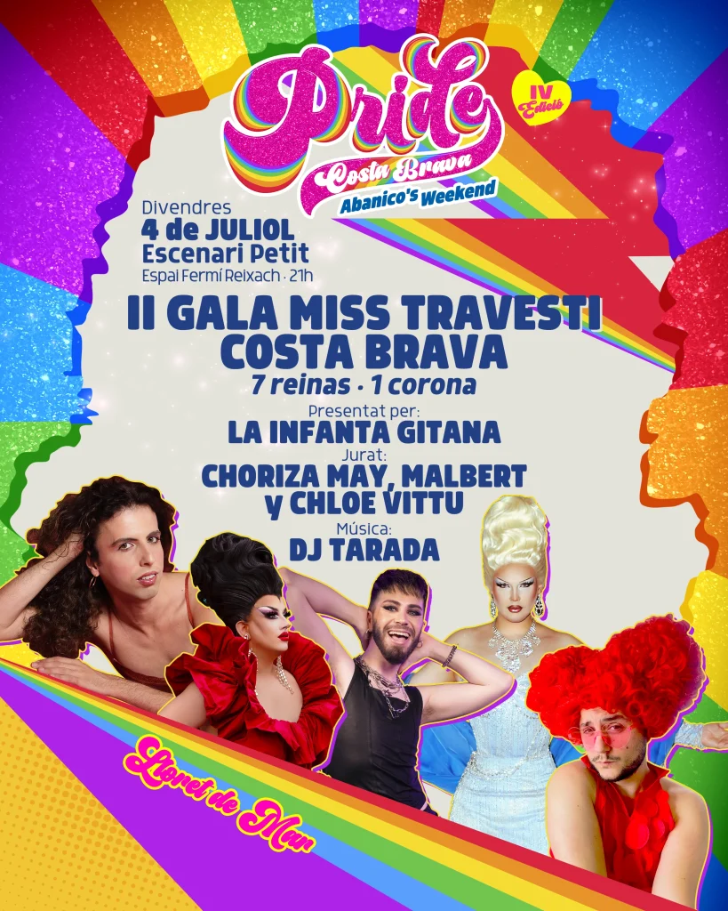 Miss Travesti Costa Brava se enmarca dentro del programa de eventos del Pride Costa Brava que se celebrará en Lloret de Mar (Girona) durante los días 31 de mayo y 1 y 2 de junio de 2024 (Abanico’s Weekend). Al igual que en los concursos de Misses, buscamos elegir a la mejor persona representante de nuestra gala, centrada en la defensa de los derechos del colectivo LGTBIQ+.